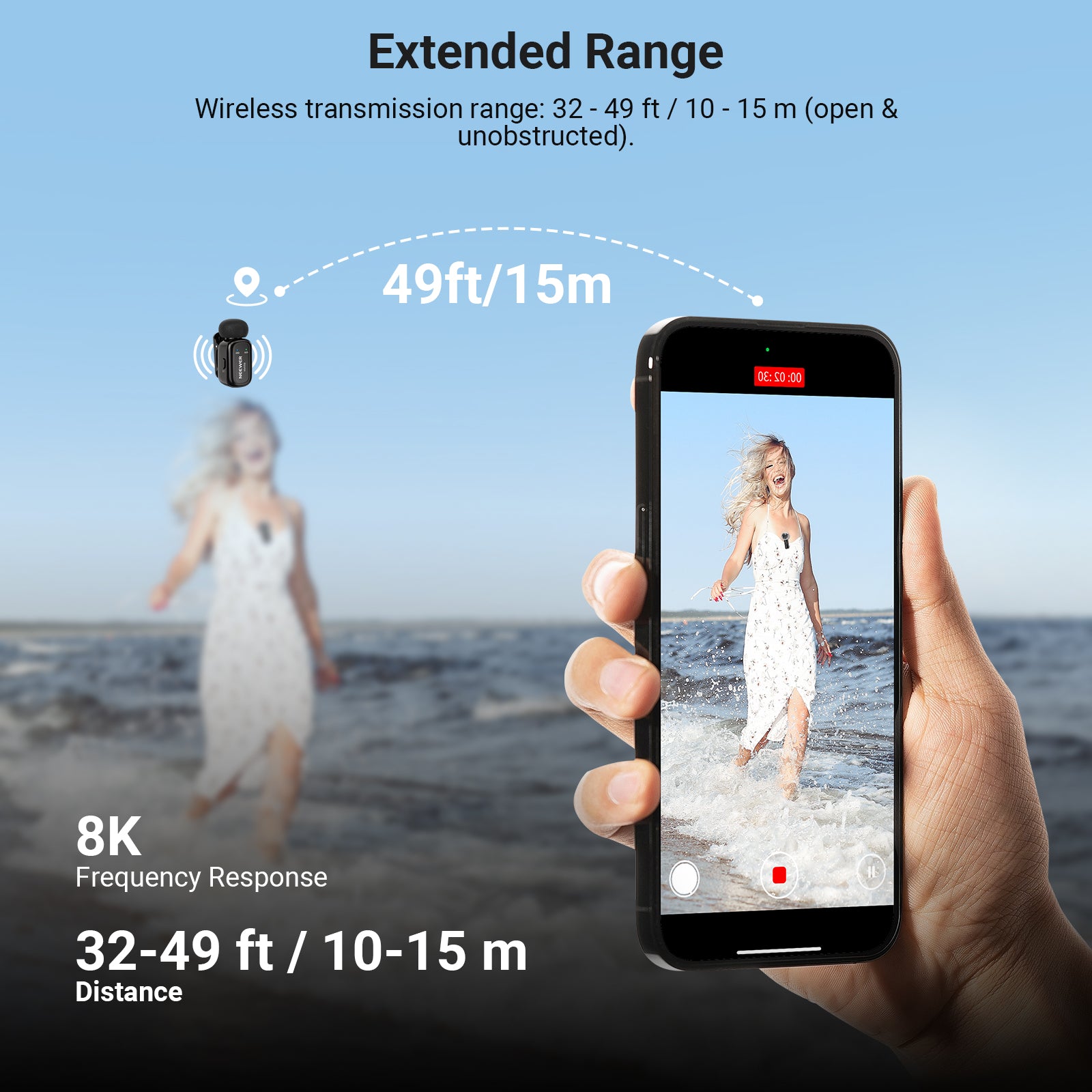 • Simplify Your Workflow- This wireless microphone transmitter connects directly to your smartphone or tablet via the NEEWER View app—no receiver or cable needed and no charging port occupied.