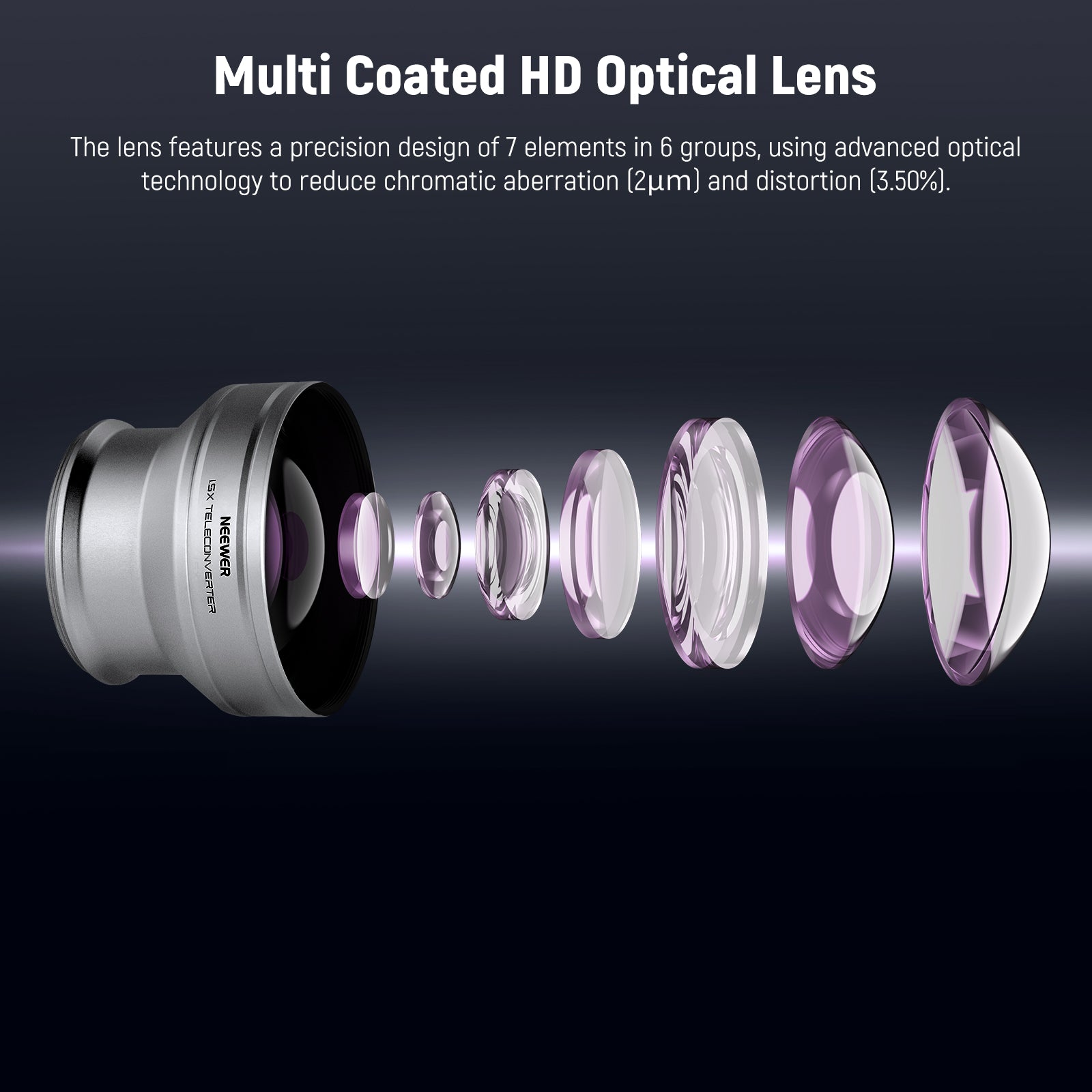 - Multi Coated Optical Glass- The 1.5x Tele conversion extends focal length while preserving image clarity and detail, delivering crisp, true to life colors