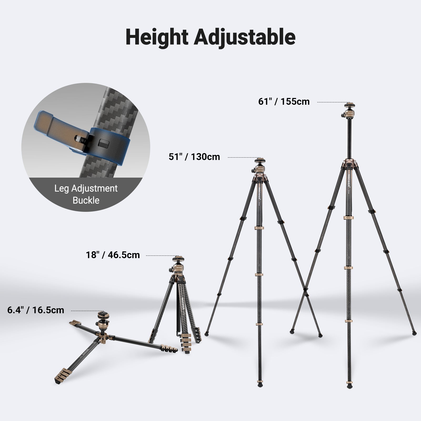 NEEWER LT39 62.4" Carbon Fiber Travel Tripod