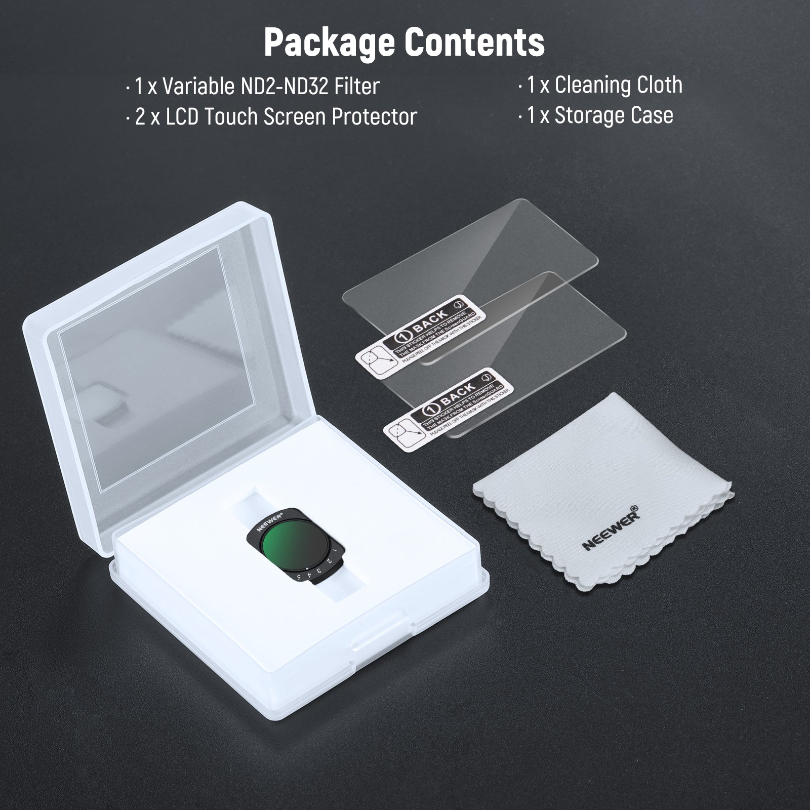 - Fully Compatible with Osmo Pocket 3- NEEWER Magnetic Variable ND2-ND32 Filter is seamlessly compatible with DJI Osmo Pocket 3, helping you to handle various light conditions with ease. From overcast to bright sunny days, simply rotate this adjustable neutral density filter to adjust the amount of light that enters your camera lens to avoid overexposure.