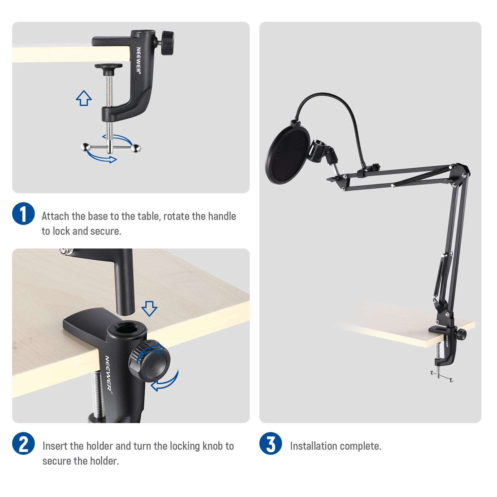 - Easily clamps to any desktop up to 2.2"/5.6cm thickness; Suitable for use in stores, by families, on stages, in studios, for broadcasting