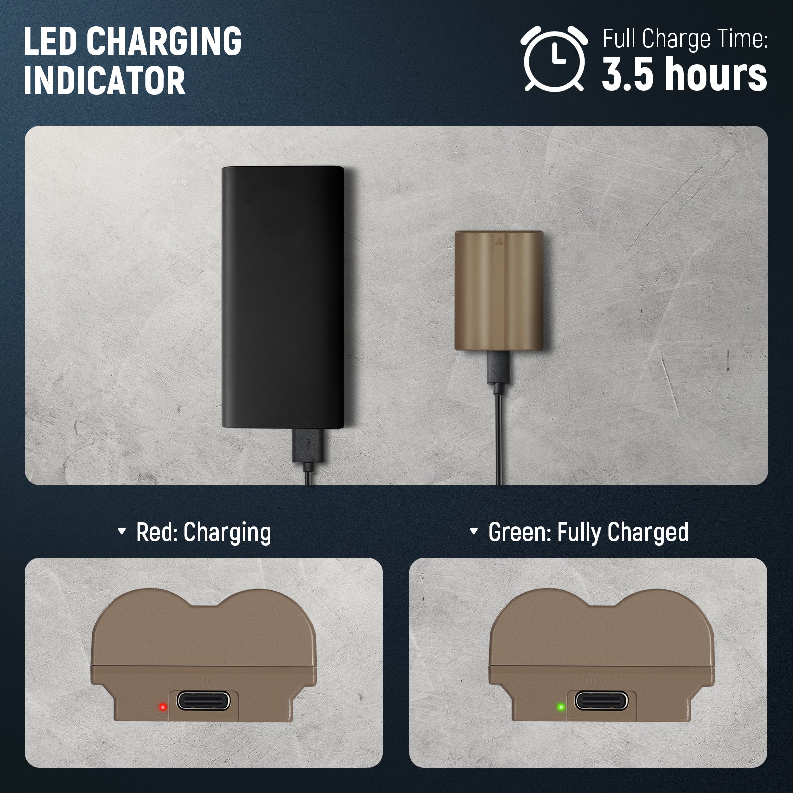 - USB Type C Charging Port- Built with a USB Type C charging port, this battery does not need an external battery charger. All you need for charging is a USB Type C cable (included) and a 5V USB power adapter (not included)