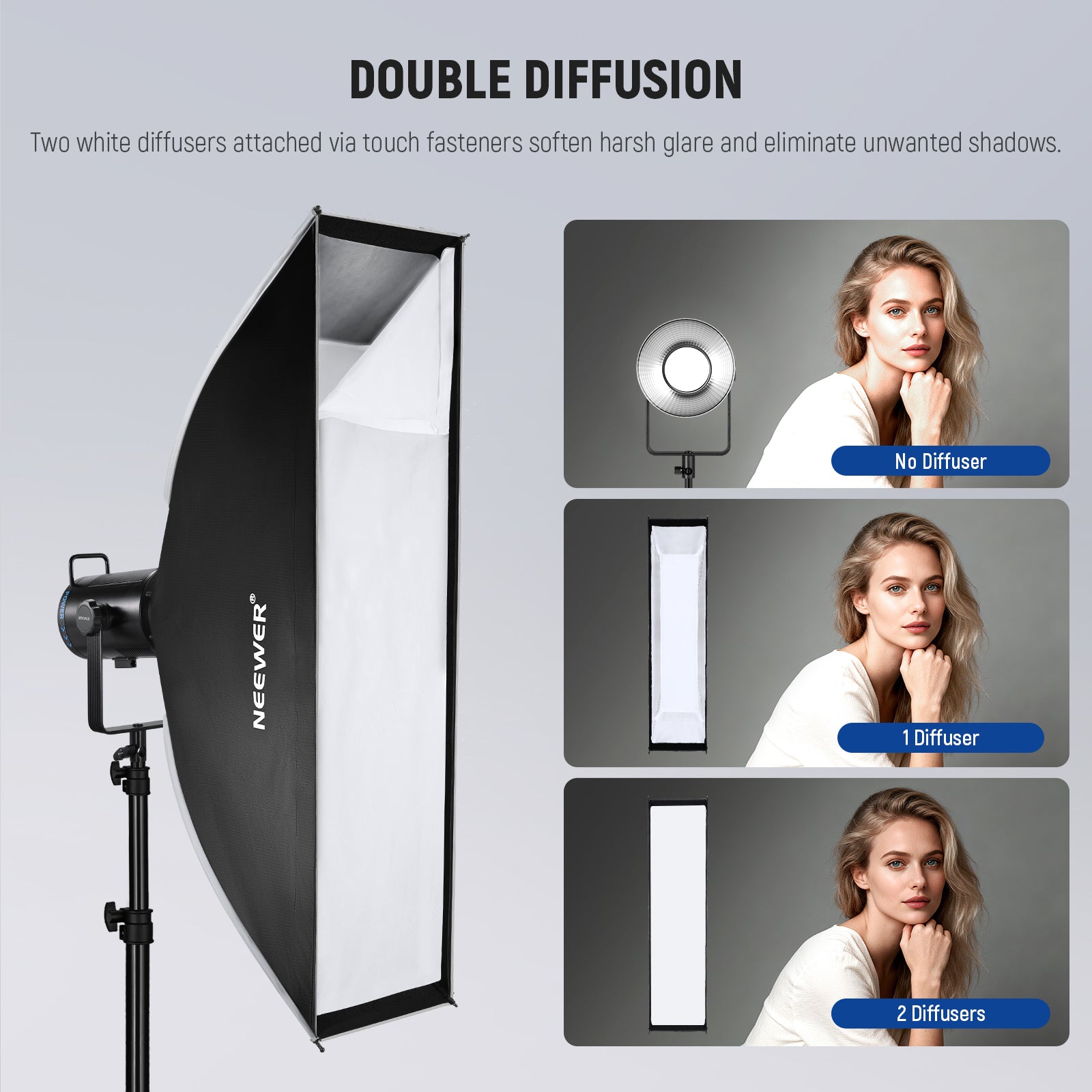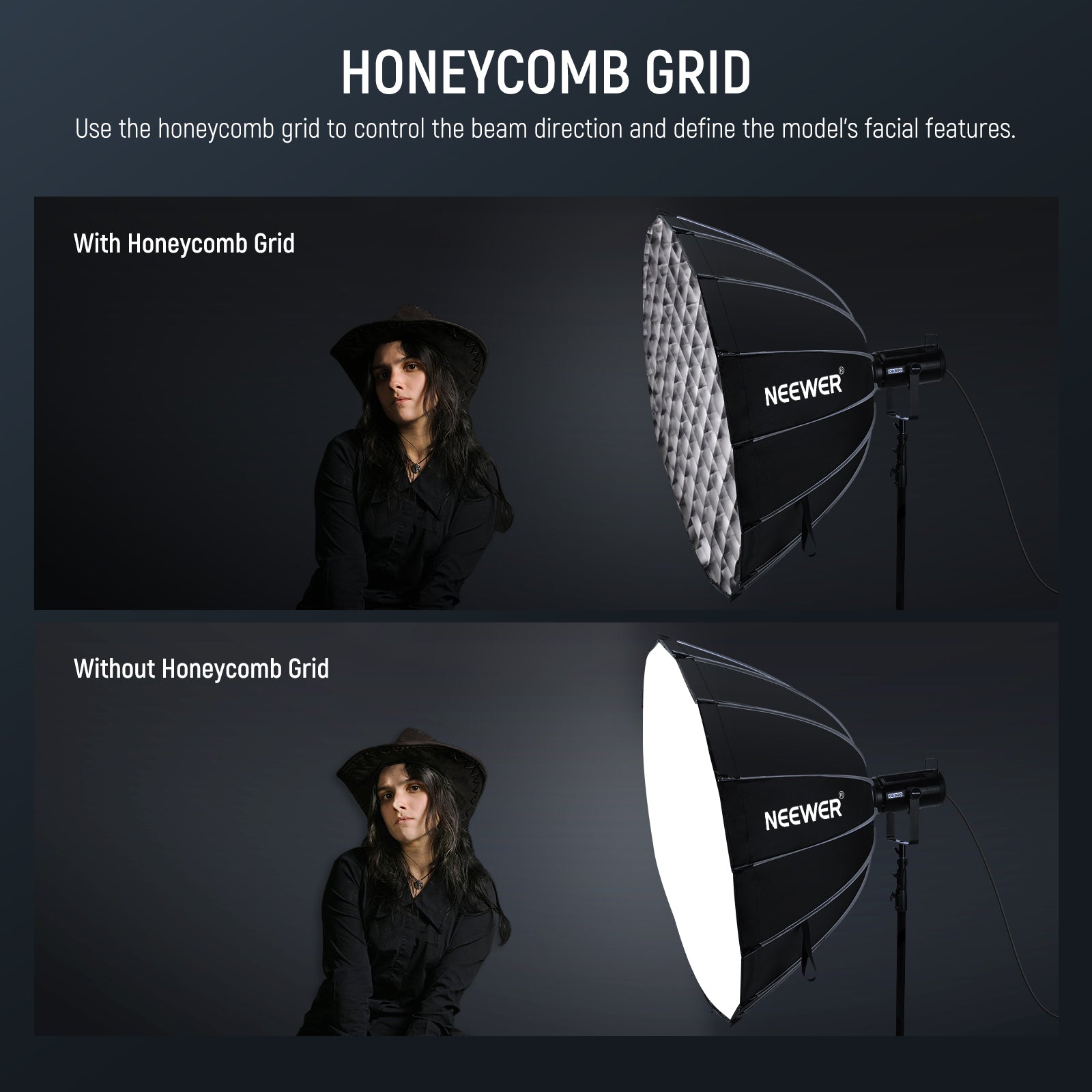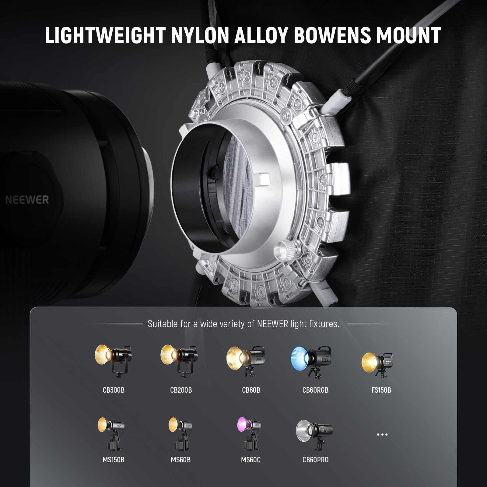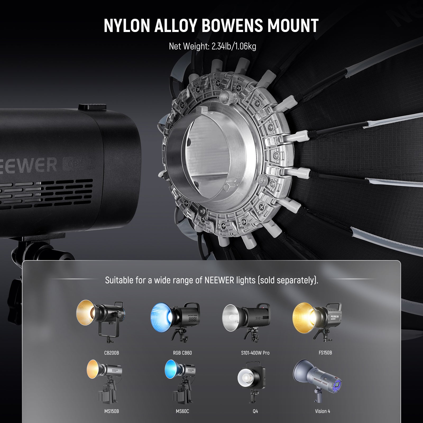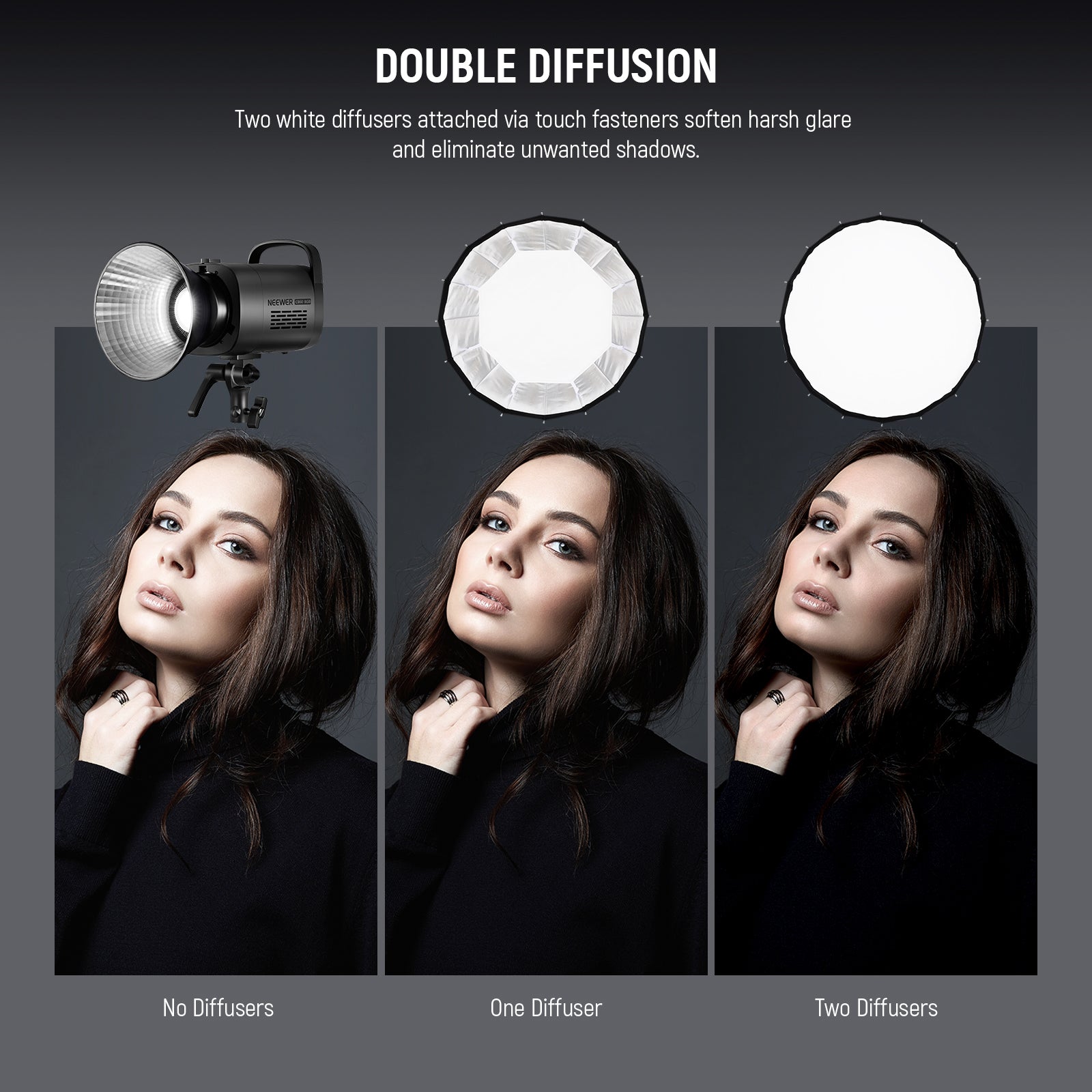 NEEWER offers a variety of softboxes, including parabolic, octagonal, lantern softboxes, and more. Most of these photography softboxes are portable and collapsible. These softboxes can give you better even lighting and are perfect for shooting portraits or events such as weddings, proms, or corporate events on location. Choose a good softbox to elevate your photography to the next level.