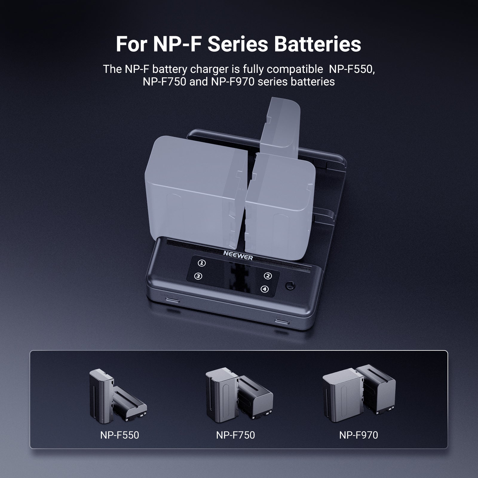• For NP-F Series Batteries- The NP-F battery charger is fully compatible with Sony NP-F550 NP-F750 NP-F970 series rechargeable batteries, providing a versatile power solution for various cameras, camcorders, and photography lighting equipment as content creator essential accessories and influencer must have gear