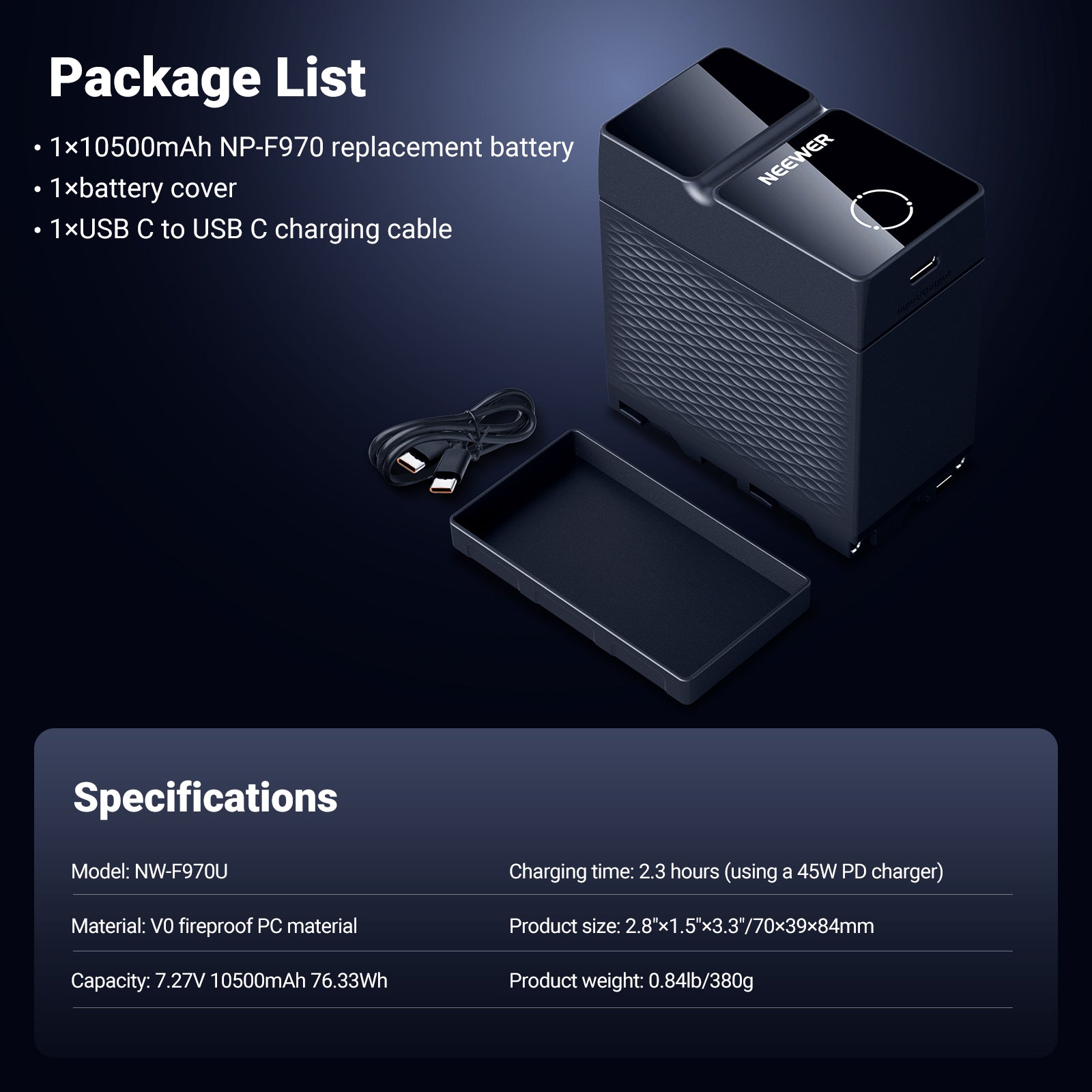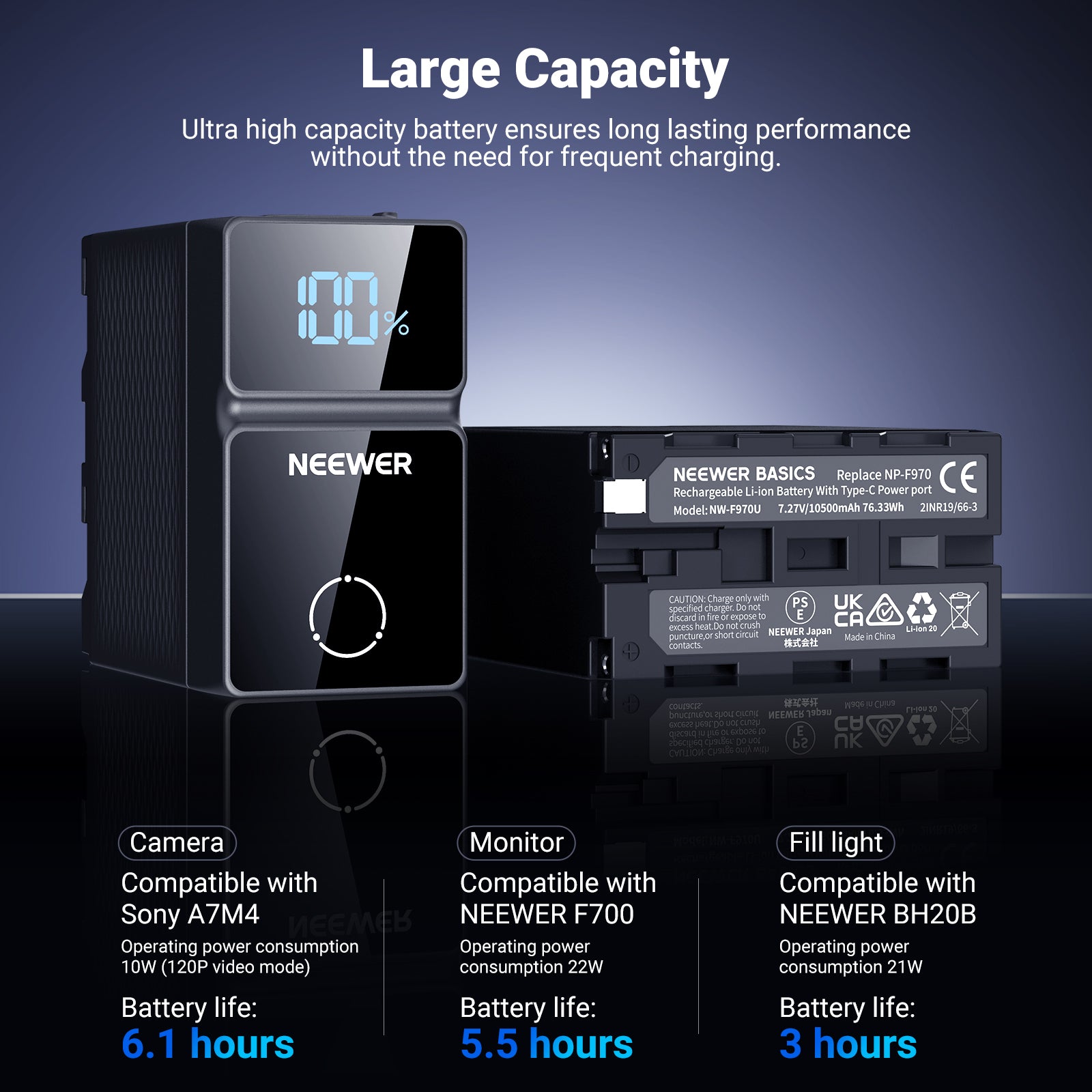 NEEWER NW-F970U 10500mAh Touchscreen NP-F970 Replacement Battery