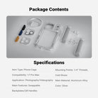 - 3 Interchangeable Backplates- With a 67mm filter ring, 17mm threaded phone lens backplate, and T mount lens backplate (compatible with Moment) for creative shots. Note: Open top bracket before mounting backplates. Filters and lenses not included