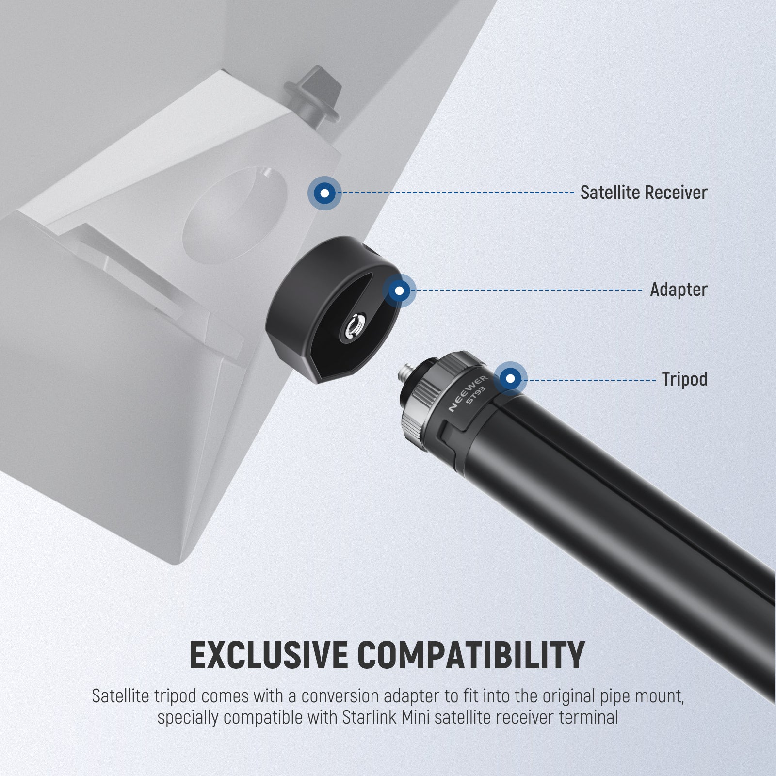 - Compatible with Starlink Mini ONLY- NEEWER ST93 satellite tripod mounting accessories kit comes with a conversion adapter to fit into the original pipe mount, specially compatible with Starlink Mini satellite receiver terminal Note: NOT compatible with the newest pipe adapter mount.