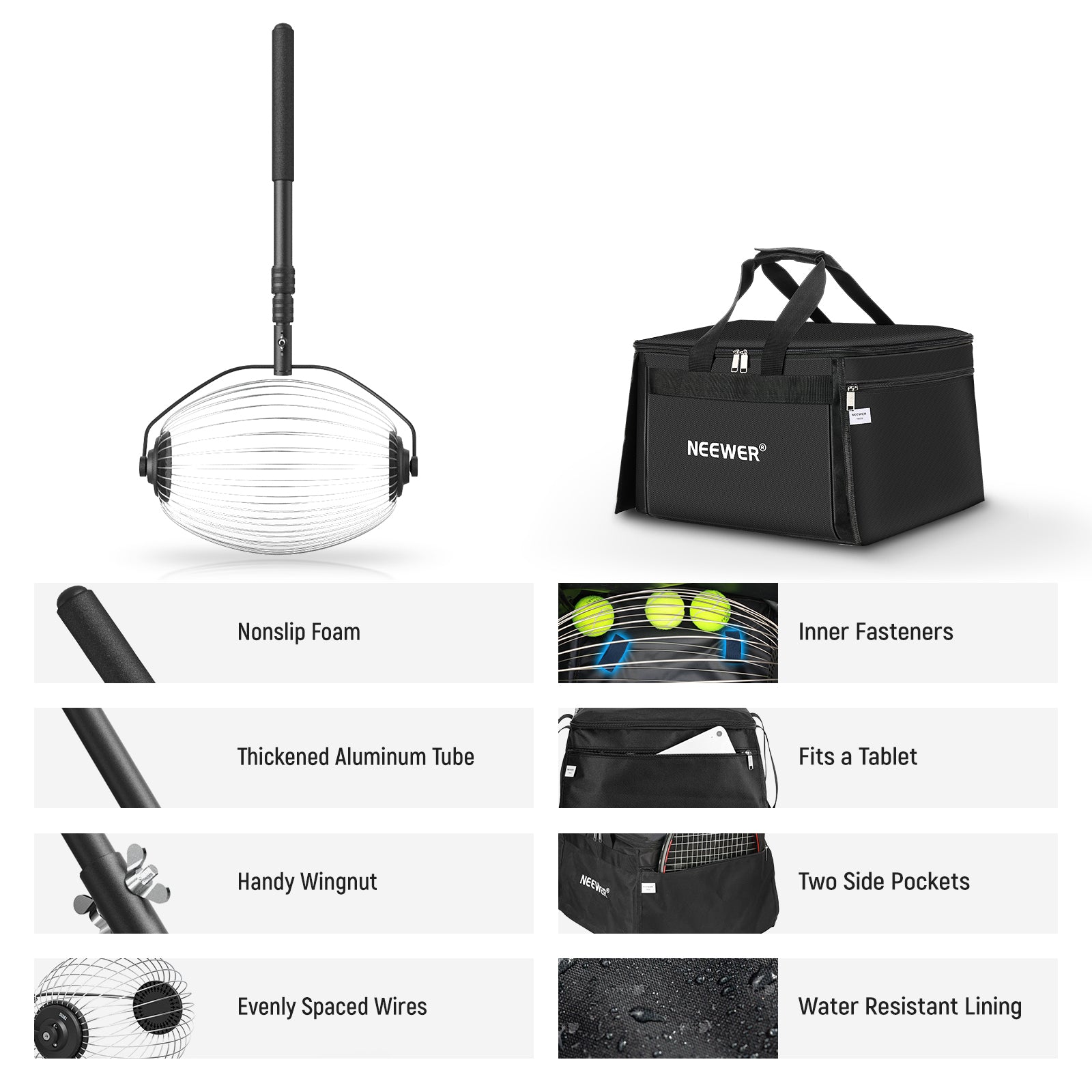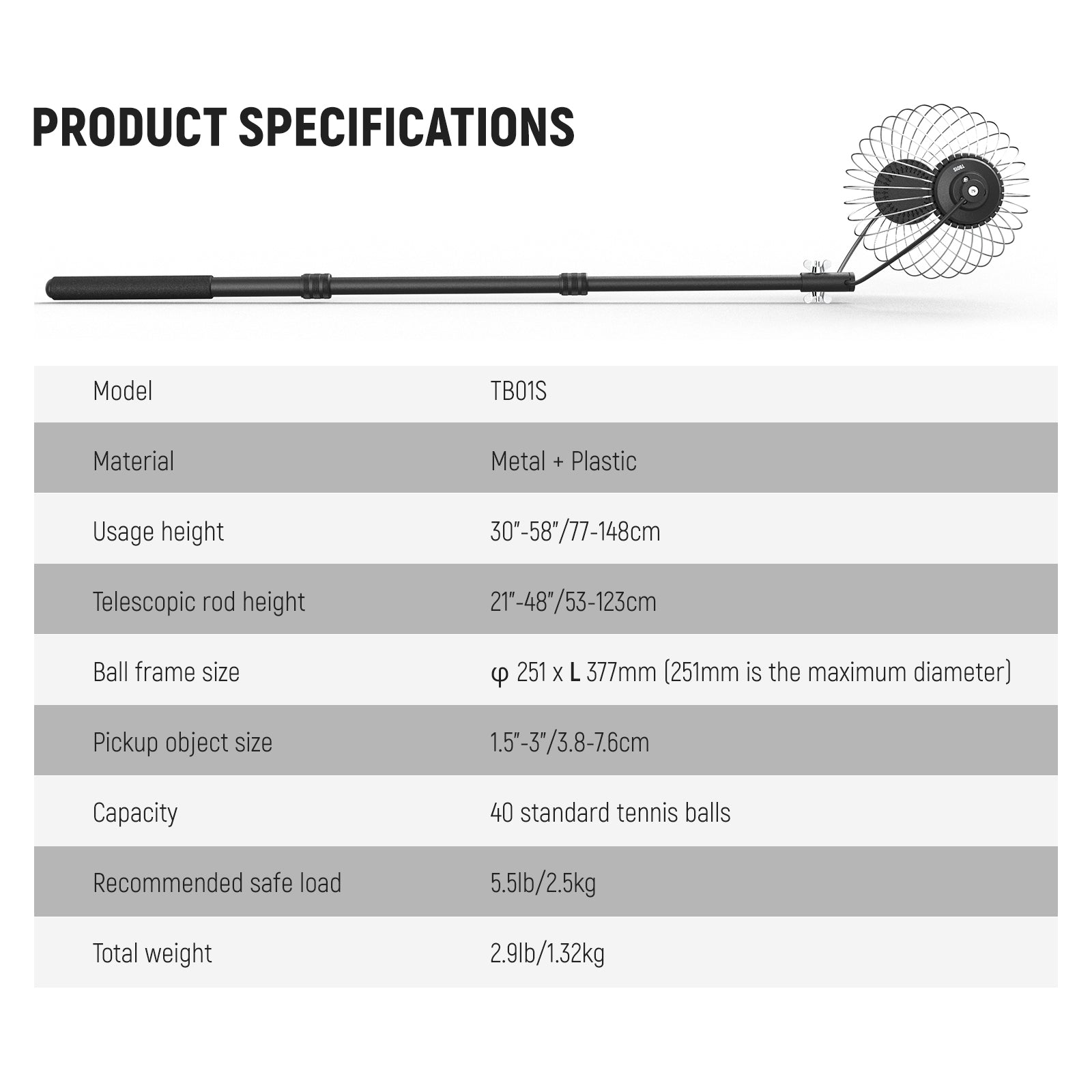 - Adjustable Height for Optimal Comfort- The telescopic handle allows you to adjust the tennis ball collector's height between 30"-58"/77-148cm to accommodate users of different heights, with the end covered in soft, nonslip foam for a comfortable grip. It ensures a pleasant experience for everyone, saving time and avoiding unwanted hassle, so you can focus more on your practice
