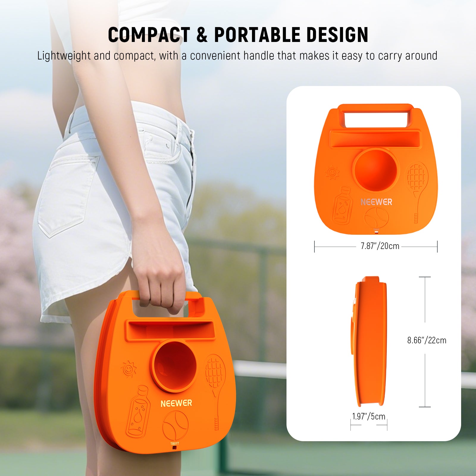 - Ergonomic Design- The base features a vibrant orange color for easy visibility. It includes an integrated racket holder that securely fits most standard rackets, along with a ball storage slot to keep your gear neat, organized, and within reach while you take a break