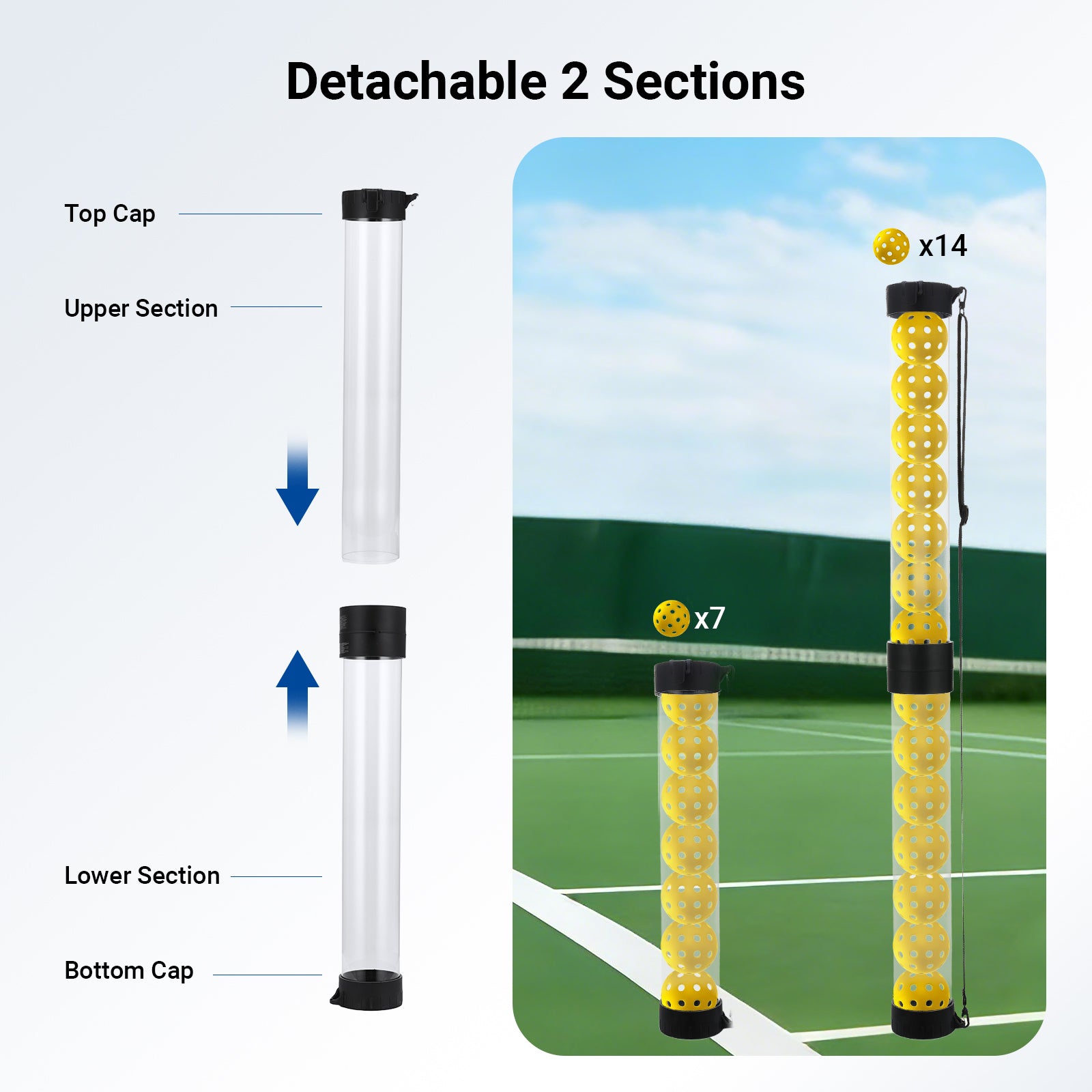 - Adjustable Shoulder Strap- Adjustable shoulder strap hooks onto both ends of the tube, making it more portable than ball holder cart, caddy, machine, basket, and other tennis pickleball practice training accessories pickle ball pickup equipment