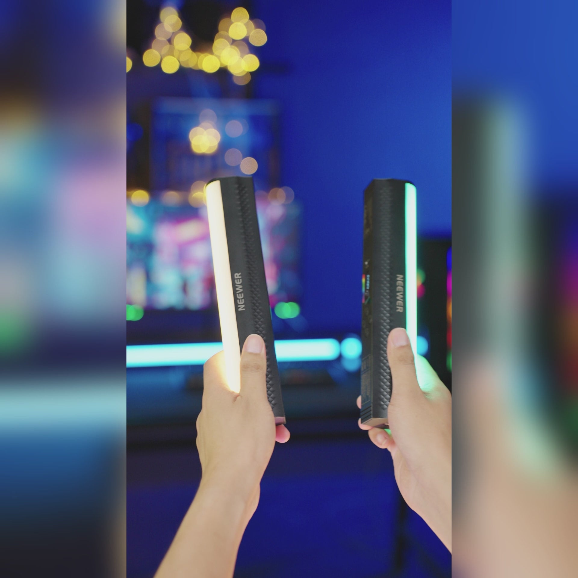 - Versatile Handheld RGB Colorful Light Stick- With 195 powerful LEDs, this NEEWER 10W light equipment delivers a max illuminance of 730lux at 0.5m, a 95+ CRI for more accurate color rendition without flicker or glare. Compact at 9"x1.6"x1.8"/228x40x45mm and 9.5oz/270g for single hand grip, ideal gear for your lighting accessories, for camera photography, filming, live streaming, parties, wedding films, camping, still life photos, studio indoor photoshoots, YouTube/TikTok video recording, etc