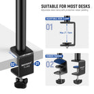 - Adjustable & Stable C Clamp- Crafted from heavy duty aluminum alloy and padded with rubber, the C clamp ensures optimal stability to hold your device safely. It is compatible with desks up to 2"/5cm thick, and mounts on the edge of the desk to keep your setup clean and tidy