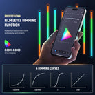 - Precise PWM Dimming- The portable LED light wand allows 4 dimming curves (Linear/S/Logarithmic/Exponential) and X/Y dimming patterns, enabling professional, smooth brightness adjustment. Multiple modes include HSI for 36,000 colors, RGBCW for 0-255 color ratio tuning, and RESCO & LEE mode to fully restore 40 film level color gels, swiftly adjusted to scene specific colors. Gently glide a finger through the touch bar to select colors for your photography, which can be deactivated with a click