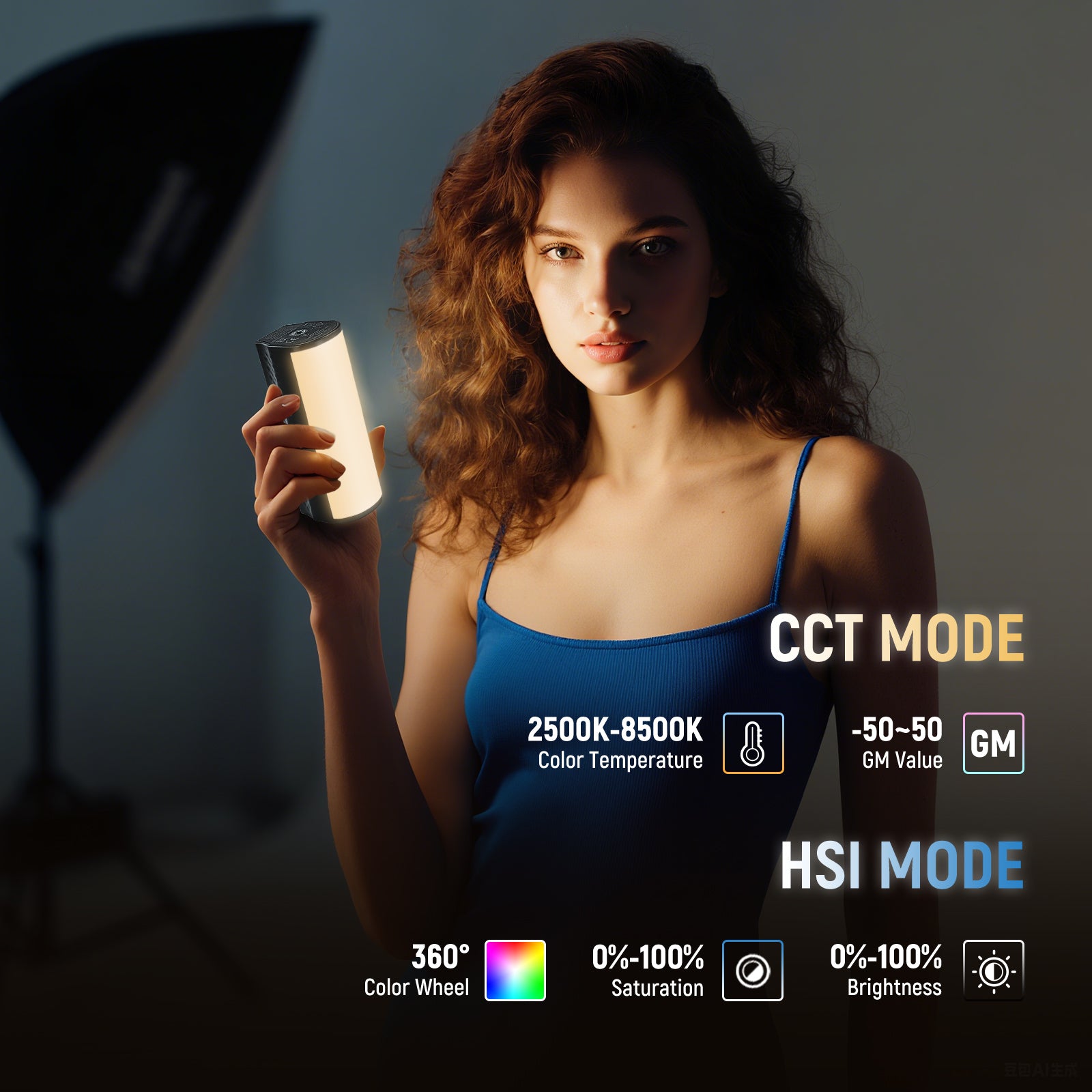 - Creative Lighting with CCT/HSI/FX Modes- This film light stick features precise light adjustments for custom lighting scenes. Adjust color temperature from 2500K to 8500K in CCT mode and use the built in GM adjustment for color calibration. HSI mode fine tunes 360° color wheel, 0-100% brightness, and 0-100 saturation. Explore creativity with the 17 scene effects like cop/police car, lightning, fireworks, etc. The OLED display and physical buttons for intuitive operation