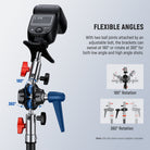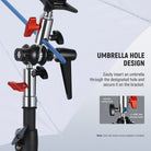 - Two 0.39"/1cm Soft Umbrella Holder- Easily insert an umbrella through the designated hole and secure it on the bracket. Use an umbrella together with a Speedlite flash to soften and spread the flash light. Angle adjustable as well