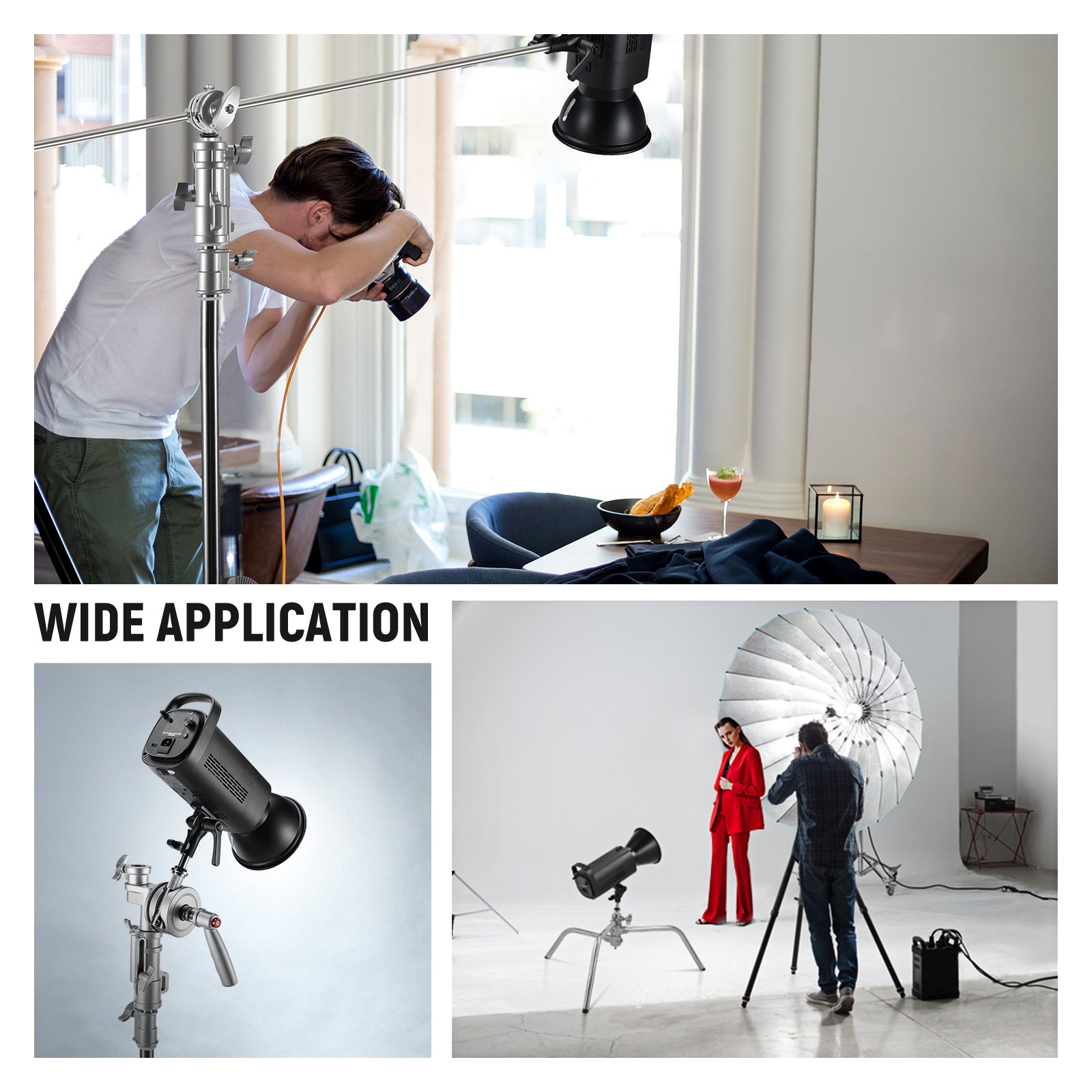 - Wide Application- For any C stand, heavy duty light stand, TV clamp, and turtle base with a 1-1/8" junior receiver, and for any studio monolight and LED video light with a 5/8" baby receiver