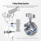 - Quick Release & Easy Setup- Simply press to quick release or attach the mounting clamp on C stands, light stands, and other poles with diameters from 1" to 1.4" (25 to 35mm), then secure high or low with the locking collar