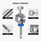 - 3 Embedded Stable Mounting- Built with three embedded mounting positions spaced at 90 degree intervals, this grip head rod clamp can stably hold three grip arms at the same time. Works perfectly with the enlarged screw knob for a tighter interlock and more precise torque to secure the grip head onto the stands. Note: only one grip arm is included
