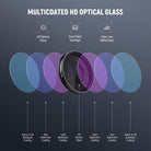 - Multicoated Optical Glass- Ensures sharp imaging while withstanding water, fingerprints, and scratches during everyday use. A cleaning cloth is included for upkeep