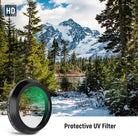 - Protective UV Filter- Featuring 99.8% light transmittance, the protection UV filter is mounted on your camera lens to block ultraviolet rays and protect the lens from dust, scratches, and bumps