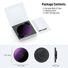 - Easy & Precise Exposure Control- The variable ND8-32 filter offers 3-5 stops of adjustable light reduction for different lighting environments. Simply rotate the outer frame to exact marks for accurate exposure balance and capture movement with dynamic motion blur