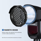 - Quick and Easy Installation- With strong magnetic force, the accessories can be easily and firmly mounted on the Z1 flash head. Directly mount the barndoor, the honeycomb grid, and the dome diffuser and they will be magnetically attracted. Connect the diffuser panel, the color gels, and the bounce diffuser to the included magnetic adapter ring first, then attach them to the flash head